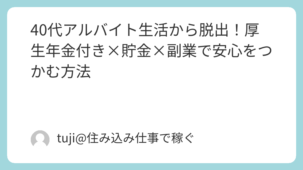 40代からのアルバイト生活では、今の収入だけでなく将来への備えも大切です。